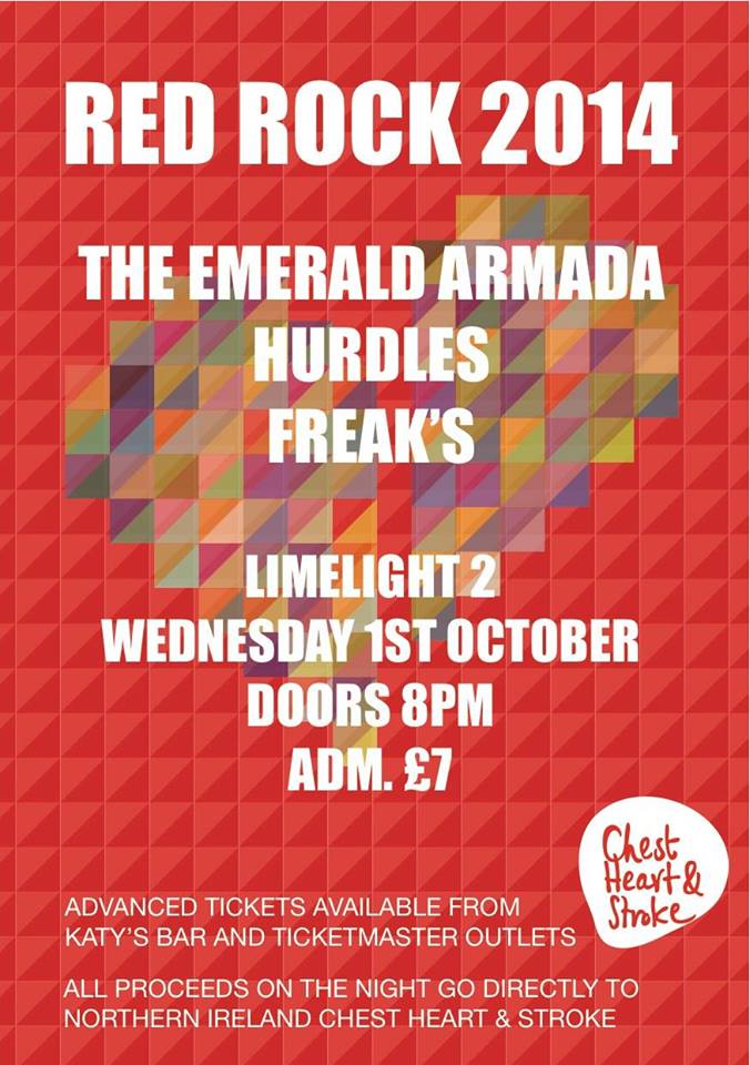 The Emerald Armada play the iconic Limelight 2 venue in Belfast tonight alongside Hurdles and Freak’s as part of Red Rock 2014.